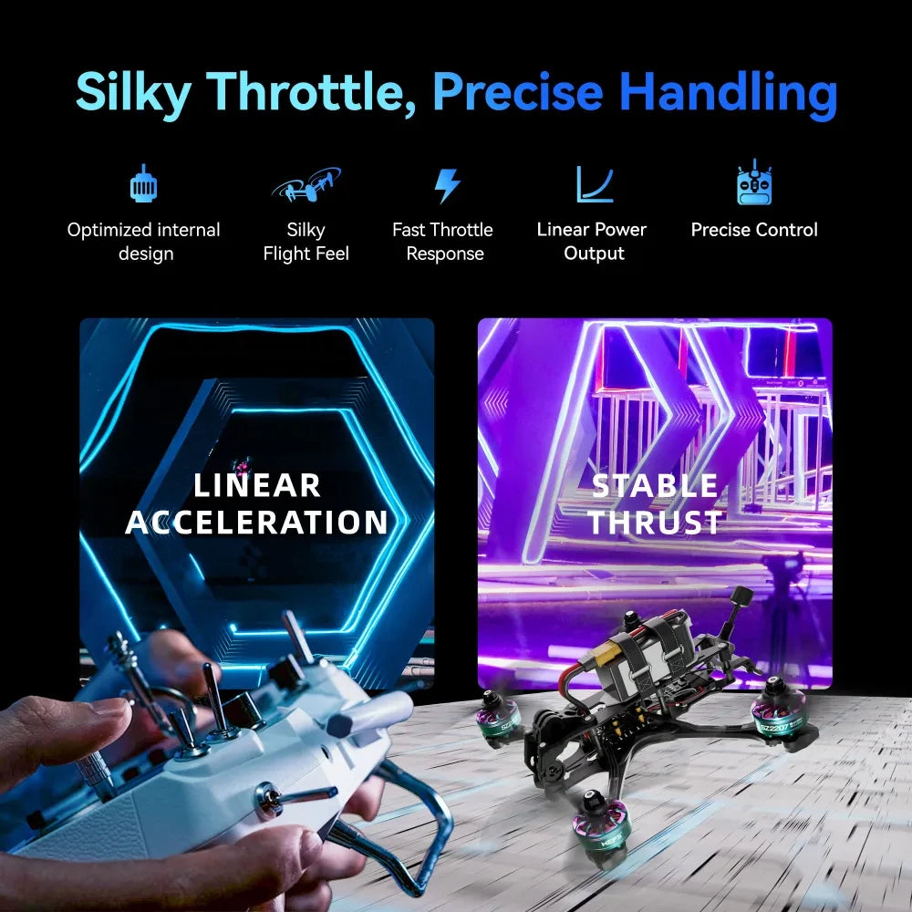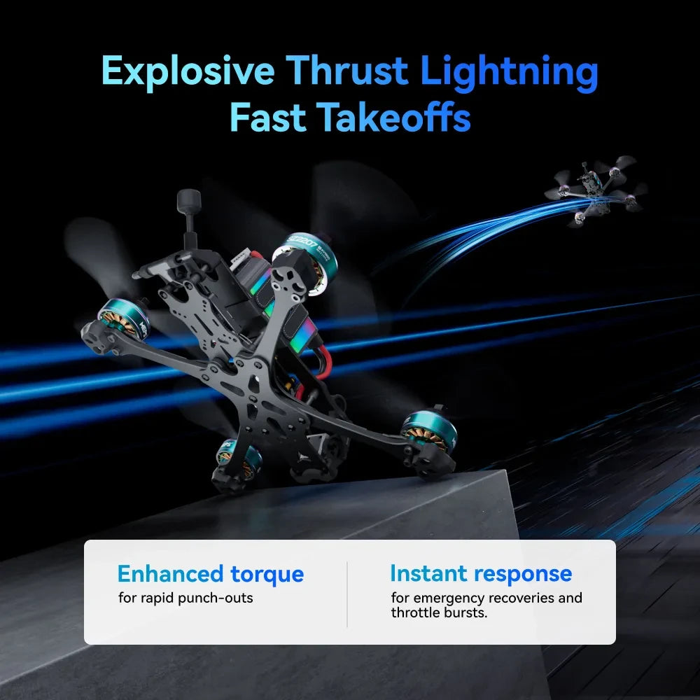 The SZ2207 brushless motor delivers stronger burst power, enabling rapid acceleration that helps pilots gain a competitive edge right at the starting line. This quick burst not only enhances initial takeoff speed but also provides sustained power throughout the race, ensuring pilots can maintain high speeds with confidence.